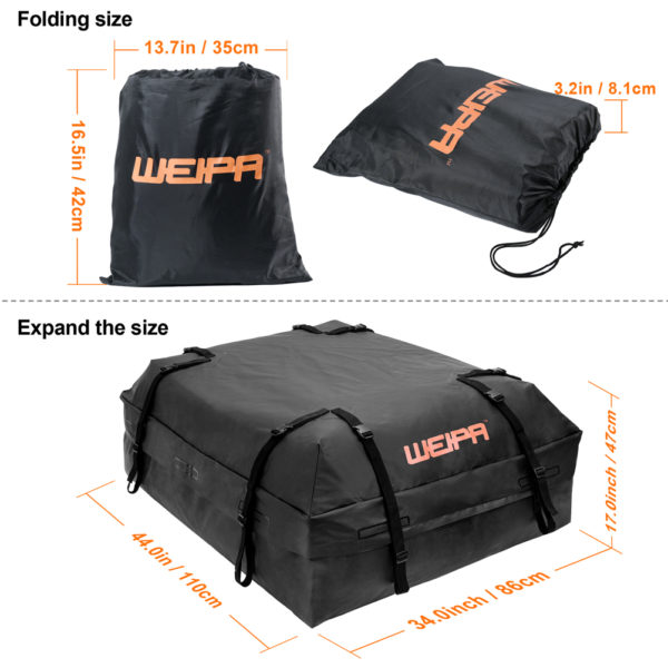 WP-C001 WEIPA Waterproof Rooftop Cargo Carrier Heavy Duty Roof Top Luggage Storage Bag with 8 Reinforced Adjustable Straps for Extra Protection – Perfect for Car, Truck, SUV, Van – 15 Cubic Feet
